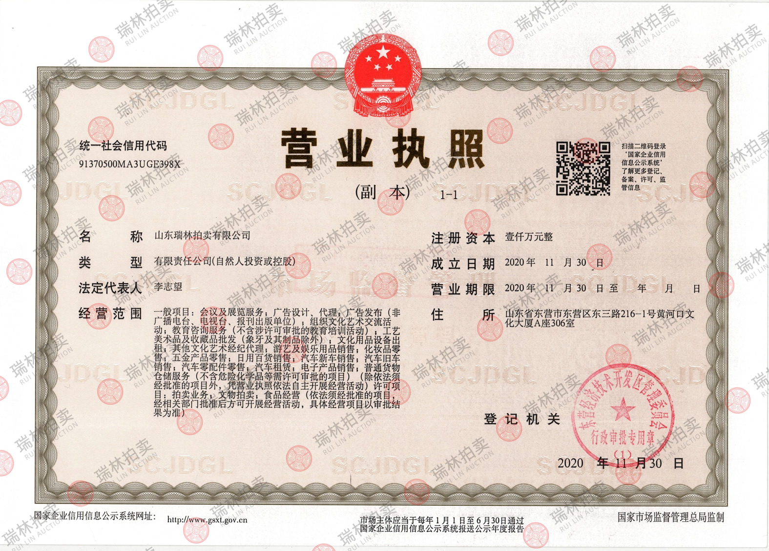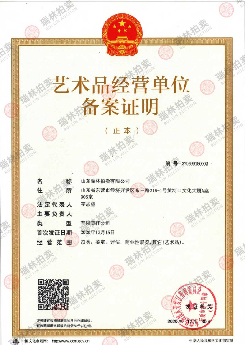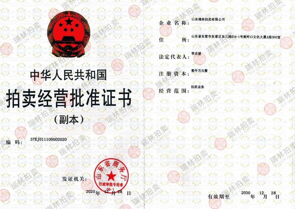 山东瑞林拍卖有限公司有限公司 版权所有©2020 地址:山东省东营市东营区东三路216-1号 联系电话:18701236567 鲁ICP备2020048190号-1